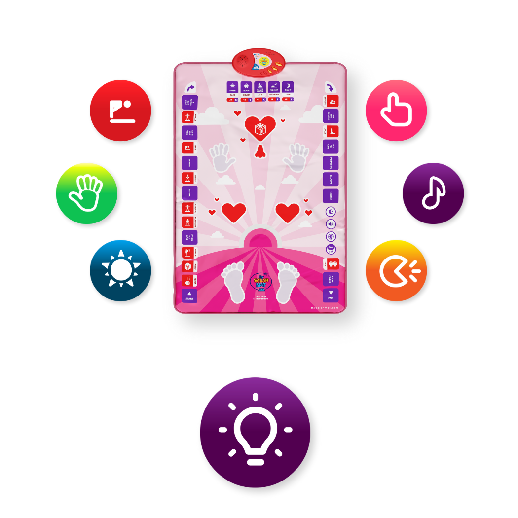 Using My Salah Mat makes learning salah a fun and enjoyable experience, with its colourful layout, buttons to push, and audio sounds.