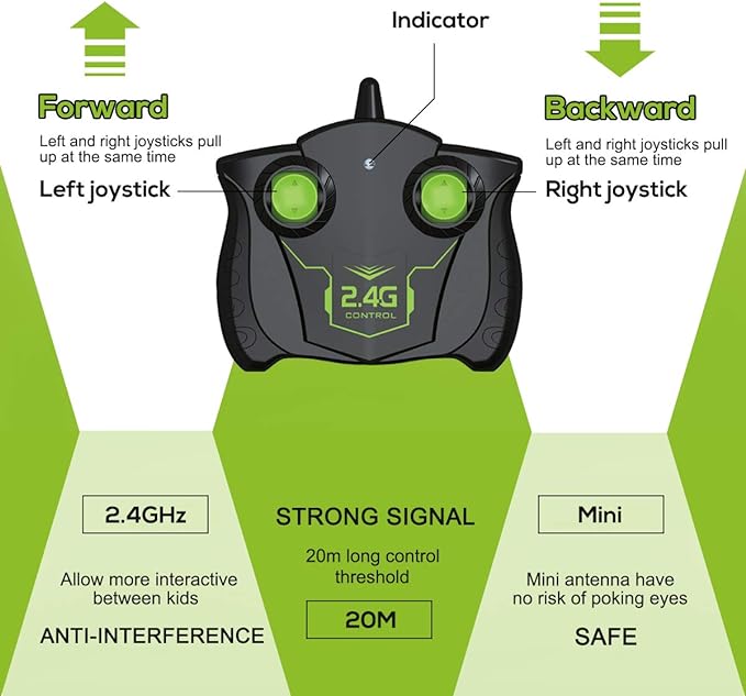 š”Ā Long Distance & Anti-Interference Transmitter:Ā Equipped with a 2.4GHz wireless remote control, this racing car allows kids to compete with friends without signal interference. The remote control has a maximum distance of about 65ft, providing ample space for thrilling races and maneuvers.